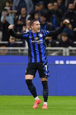 Inter vs Juventus nella foto Denzel Dumfries (Inter) esultanza dopo il gol del 4 a 2 Milano 27-10-2024 Stadio Giuseppe Meazza - San Siro Campionato Serie A Enilive - 9a giornata foto Roberto Garavaglia/Agenzia Aldo Liverani sas/AGENZIA ALDO LIVERANI SAS