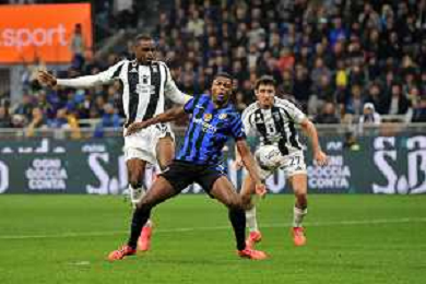 Inter vs Juventus nella foto Denzel Dumfries (Inter), coperto, segna il gol del 4 a 2 Milano 27-10-2024 Stadio Giuseppe Meazza - San Siro Campionato Serie A Enilive - 9a giornata foto Roberto Garavaglia/Agenzia Aldo Liverani sas/AGENZIA ALDO LIVERANI SAS