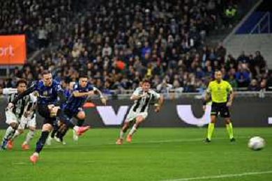 Inter vs Juventus nella foto il tiro di Denzel Dumfries (Inter) termina in rete per il gol del 4 a 2 Milano 27-10-2024 Stadio Giuseppe Meazza - San Siro Campionato Serie A Enilive - 9a giornata foto Roberto Garavaglia/Agenzia Aldo Liverani sas/AGENZIA ALDO LIVERANI SAS