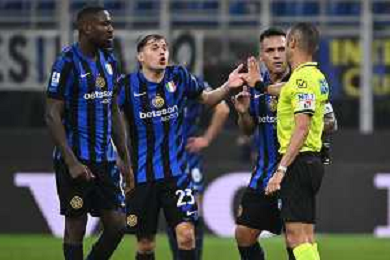 Inter vs Juventus nella foto proteste Inter con l'arbitro Marco Guida di Torre Annunziata (NA) Milano 27-10-2024 Stadio Giuseppe Meazza - San Siro Campionato Serie A Enilive - 9a giornata foto Roberto Garavaglia/Agenzia Aldo Liverani sas/AGENZIA ALDO LIVERANI SAS