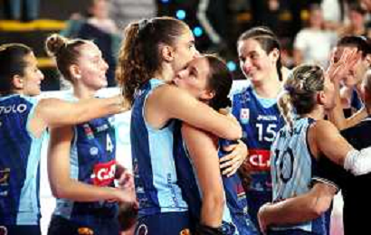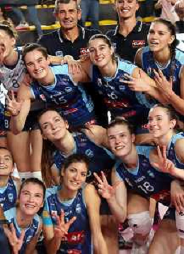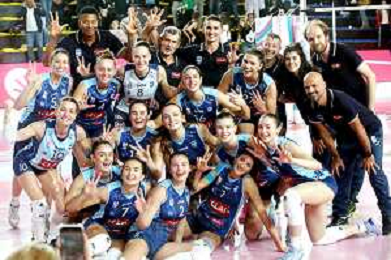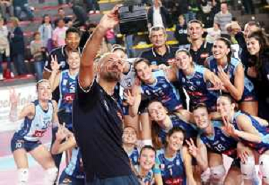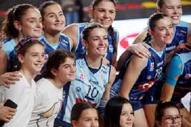 IMOLA 27 10 2024 CLAI IMOLA PALLAVOLO-CASALMAGGIORE 3-0 SERIE A2 NELLA FOTO SQUADRA CLA IMOLA DOPO LA PARTITA NELLO CALIENDO FOTO GIANNI SANNA-AG ALDO LIVERANI SAS