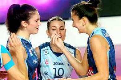 IMOLA 27 10 2024 CLAI IMOLA PALLAVOLO-CASALMAGGIORE 3-0 SERIE A2 NELLA FOTO EMMA RIZZIERI ALESSIA MISTRILLI E RAVAZZOLO EVA FOTO GIANNI SANNA-AG ALDO LIVERANI SAS
