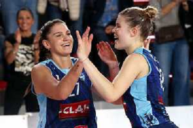 IMOLA 27 10 2024 CLAI IMOLA PALLAVOLO-CASALMAGGIORE 3-0 SERIE A2 NELLA FOTO MIGLIORINI SOFIA E CAVALLI SOFIA DOPO LA PARTITA CLAI IMOLA FOTO GIANNI SANNA-AG ALDO LIVERANI SAS