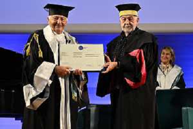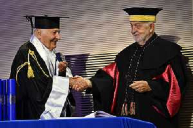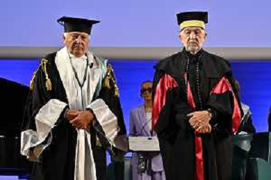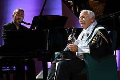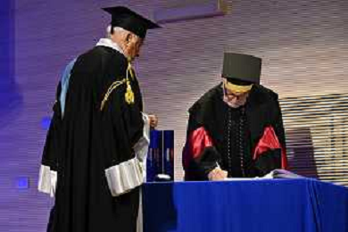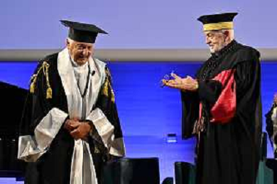 TVRG Laurea honorem Mogol nella foto Giulio Rapetti Mogol a SX Milano 28-10-2024 Università IULM conferimento del Master ad Honorem a Giulio Rapetti Mogol in Editoria e Produzione musicale foto Roberto Garavaglia/Agenzia Aldo Liverani sas