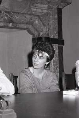 NEG-1982 MILANO CONFERENZA STAMPA “VALLANZASCA PERCHE ? “ NELLA FOTO GIULIANA BRUSA MOGLIE DI RENATO VALLANZASCA DURANTE L'INCONTRO CON LA STAMPA AG ALDO LIVERANI SAS