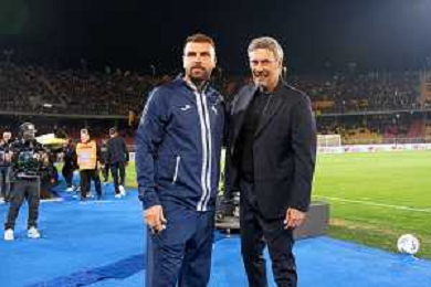 TVEM October 29, 2024 Lecce, Italy - US Lecce vs Hellas Verona - Italian soccer serie A 2024/25 - Via Del Mare Stadium. In the pic: coach Paolo Zanetti of Hellas Verona and coach Luca Gotti of US Lecce foto emmanuele mastrodonato-ag aldo liverani sas