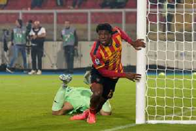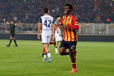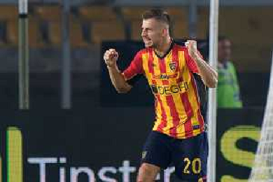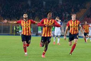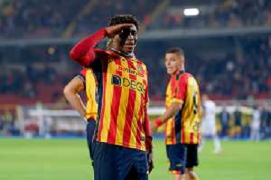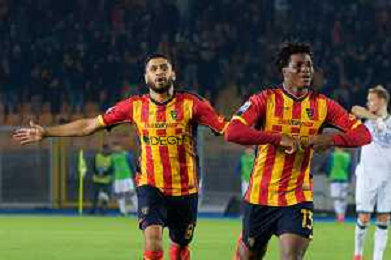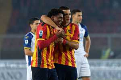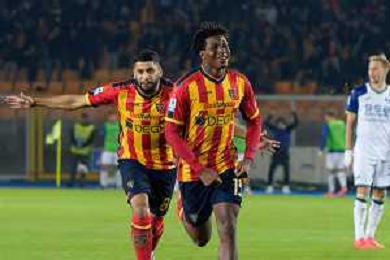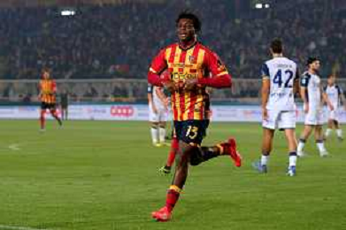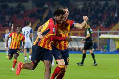 TVEM October 29, 2024 Lecce, Italy - US Lecce vs Hellas Verona - Italian soccer serie A 2024/25 - Via Del Mare Stadium. In the pic: Patrick Dorgu of US Lecce scores a goal of 1-0 foto emmanuele mastrodonato-ag aldo liverani sas