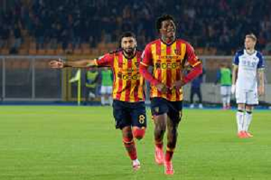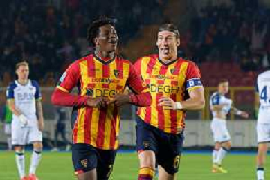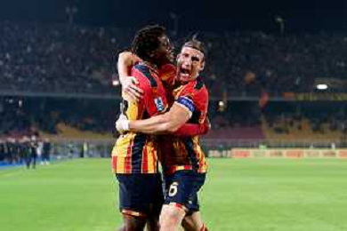 TVEM October 29, 2024 Lecce, Italy - US Lecce vs Hellas Verona - Italian soccer serie A 2024/25 - Via Del Mare Stadium. In the pic: Patrick Dorgu of US Lecce celebrates after scoring a goal with Hamza Rafia of US Lecce foto emmanuele mastrodonato-ag aldo liverani sas