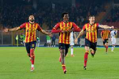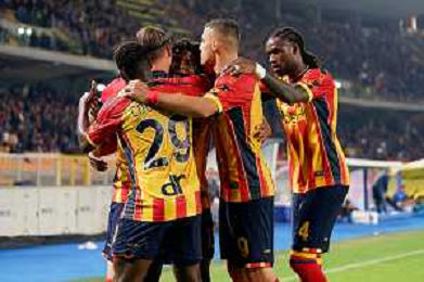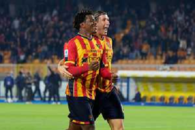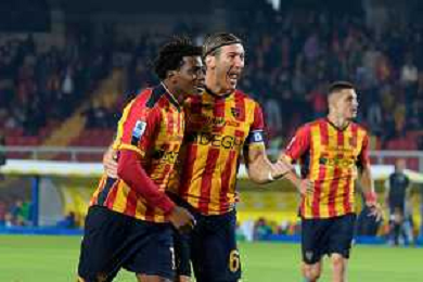 TVEM October 29, 2024 Lecce, Italy - US Lecce vs Hellas Verona - Italian soccer serie A 2024/25 - Via Del Mare Stadium. In the pic: Patrick Dorgu of US Lecce celebrates after scoring a goal with teammates foto emmanuele mastrodonato-ag aldo liverani sas
