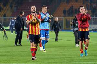 TVEM October 29, 2024 Lecce, Italy - US Lecce vs Hellas Verona - Italian soccer serie A 2024/25 - Via Del Mare Stadium. In the pic: the US Lecce players applauds fans foto emmanuele mastrodonato-ag aldo liverani sas