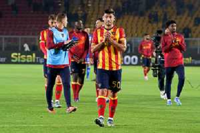 TVEM October 29, 2024 Lecce, Italy - US Lecce vs Hellas Verona - Italian soccer serie A 2024/25 - Via Del Mare Stadium. In the pic: Federico Baschirotto of US Lecce applauds fans foto emmanuele mastrodonato-ag aldo liverani sas