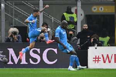 Milan vs Napoli nella foto esultanza Napoli dopo il gol dell'1 a 0 Romelu Lukaku (Napoli) con Matteo Napolitano Milano 29-10-2024 Stadio Giuseppe Meazza - San Siro Campionato Serie A Enilive - 10a giornata foto Roberto Garavaglia/Agenzia Aldo Liverani sas-AGENZIA ALDO LIVERANI SAS