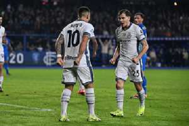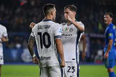 Empoli vs Inter nella foto Lautaro Martinez (Inter) e dietro Piotr Zielinski (Inter) Empoli (FI) 30-10-2024 Stadio Carlo Castellani Campionato Serie A Enilive - 10a giornata foto Roberto Garavaglia/Agenzia Aldo Liverani sas