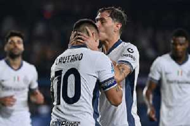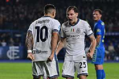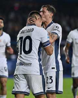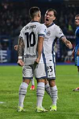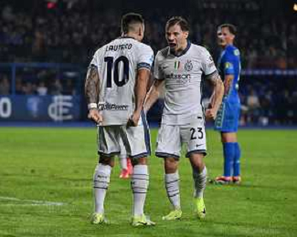 Empoli vs Inter nella foto Lautaro Martinez (Inter) e Nicolò Barella (Inter) esultanza dopo il gol del 3 a 0 Empoli (FI) 30-10-2024 Stadio Carlo Castellani Campionato Serie A Enilive - 10a giornata foto Roberto Garavaglia/Agenzia Aldo Liverani sas