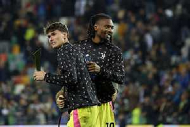 Udinese - Juventus Campionato Calcio Serie A 02.11.2024 nella foto Esultanza giocatori juventus a fine gara - Nicolo’ Savona con Khephren Thuram ©P.G. - AG. ALDO LIVERANI SAS