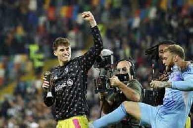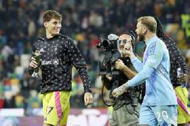 Udinese - Juventus Campionato Calcio Serie A 02.11.2024 nella foto Esultanza giocatori juventus a fine gara - Nicolo’ Savona e Michele Di Gregorio ©P.G. - AG. ALDO LIVERANI SAS