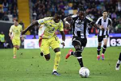 Christian Kabasele of Udinese FC play the ball during Udinese Calcio vs Juventus FC, 11° Serie A Enilive 2024-25 game at Bluenergy stadium in Udine (UD), Italy, on November 02, 2024. (Photo by Davide Casentini)- AGENZIA ALDO LIVERANI SAS