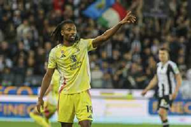 Khephren Thuram of Juventus FC gestures during Udinese Calcio vs Juventus FC, 11° Serie A Enilive 2024-25 game at Bluenergy stadium in Udine (UD), Italy, on November 02, 2024. (Photo by Davide Casentini)- AGENZIA ALDO LIVERANI SAS