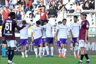 TVMV-Torino 03.11.2024 Stadio Grande Torino @Manuela Viganti/Ag. Aldo Liverani sas Torino vs Fiorentina Campionato Calcio Serie A Enilive 2024/2025 11a giornata Nella foto: esultanza fiorentina dopo il gol di moise kean ©Viganti - AGENZIA ALDO LIVERANI SAS
