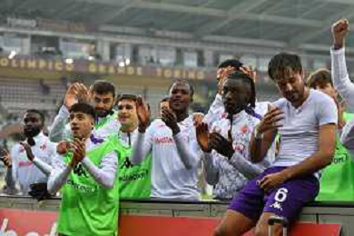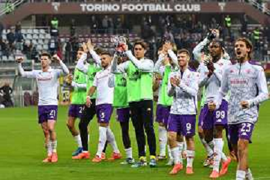 TVMV-Torino 03.11.2024 Stadio Grande Torino @Manuela Viganti/Ag. Aldo Liverani sas Torino vs Fiorentina Campionato Calcio Serie A Enilive 2024/2025 11a giornata Nella foto: festa fiorentina a fine gara ©Viganti - AGENZIA ALDO LIVERANI SAS