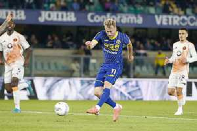 Ondrej Duda of Hellas Verona FC play the ball during Hellas Verona FC vs AS Roma, 11° Serie A Enilive 2024-25 game at Marcantonio Bentegodi stadium in Verona (VR), Italy, on November 03, 2024. (Photo by Davide Casentini)-AGENZIA ALDO LIVERANI SAS
