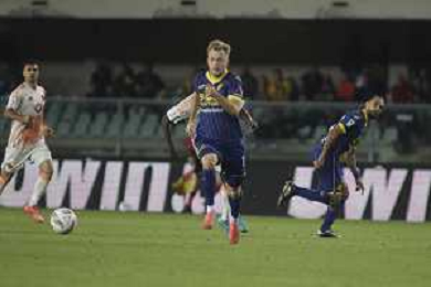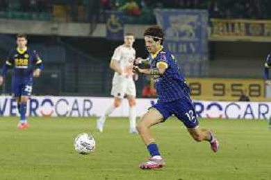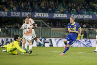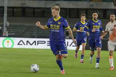Casper Tengstedt of Hellas Verona FC play the ball during Hellas Verona FC vs AS Roma, 11° Serie A Enilive 2024-25 game at Marcantonio Bentegodi stadium in Verona (VR), Italy, on November 03, 2024. (Photo by Davide Casentini)-AGENZIA ALDO LIVERANI SAS