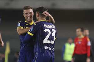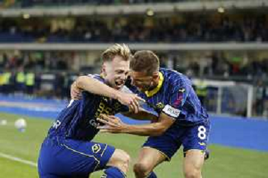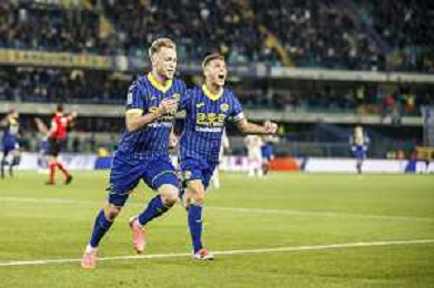 Darko Lazovic of Hellas Verona FC hugs Giangiacomo Magnani of Hellas Verona FC afther scores a goal during Hellas Verona FC vs AS Roma, 11° Serie A Enilive 2024-25 game at Marcantonio Bentegodi stadium in Verona (VR), Italy, on November 03, 2024. (Photo by Davide Casentini)-AGENZIA ALDO LIVERANI SAS
