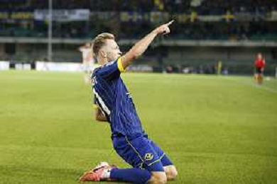 Casper Tengstedt of Hellas Verona FC scores a goal during Hellas Verona FC vs AS Roma, 11° Serie A Enilive 2024-25 game at Marcantonio Bentegodi stadium in Verona (VR), Italy, on November 03, 2024. (Photo by Davide Casentini)-AGENZIA ALDO LIVERANI SAS