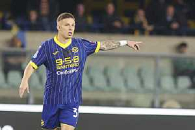 Tomas Suslov of Hellas Verona FC gestures during Hellas Verona FC vs AS Roma, 11° Serie A Enilive 2024-25 game at Marcantonio Bentegodi stadium in Verona (VR), Italy, on November 03, 2024. (Photo by Davide Casentini)-AGENZIA ALDO LIVERANI SAS