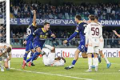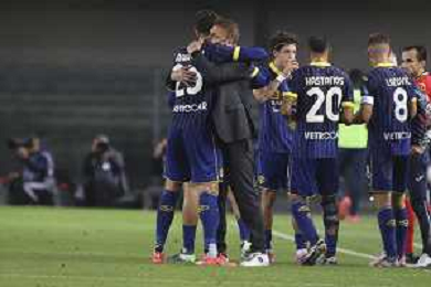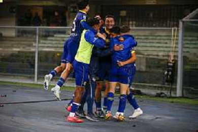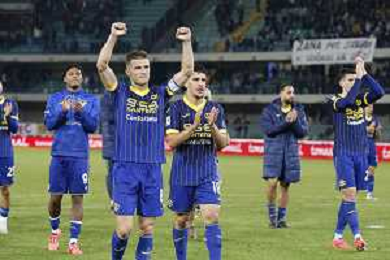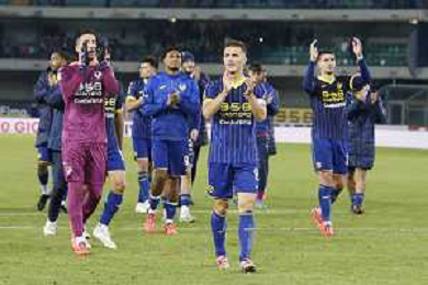 Hellas Verona celebrate players the victory at the end of Hellas Verona FC vs AS Roma, 11° Serie A Enilive 2024-25 game at Marcantonio Bentegodi stadium in Verona (VR), Italy, on November 03, 2024. (Photo by Davide Casentini)-AGENZIA ALDO LIVERANI SAS