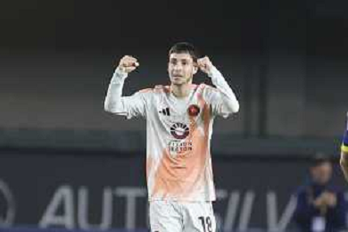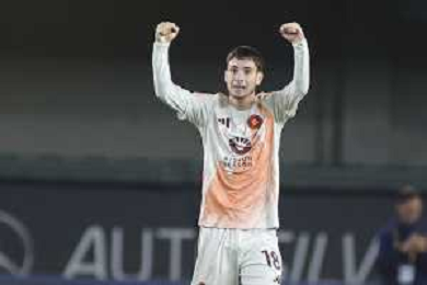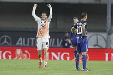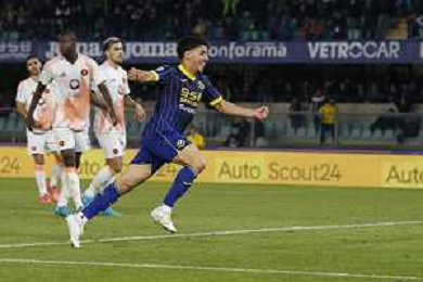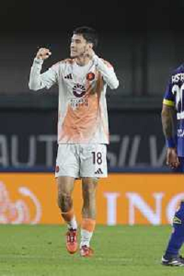 Matias Soule’ of AS Roma celebrates after scoring during Hellas Verona FC vs AS Roma, 11° Serie A Enilive 2024-25 game at Marcantonio Bentegodi stadium in Verona (VR), Italy, on November 03, 2024. (Photo by Davide Casentini)-AGENZIA ALDO LIVERANI SAS