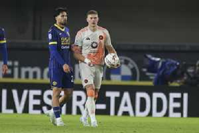 Zeki Celik of AS Roma play the ball during Hellas Verona FC vs AS Roma, 11° Serie A Enilive 2024-25 game at Marcantonio Bentegodi stadium in Verona (VR), Italy, on November 03, 2024. (Photo by Davide Casentini)-AGENZIA ALDO LIVERANI SAS