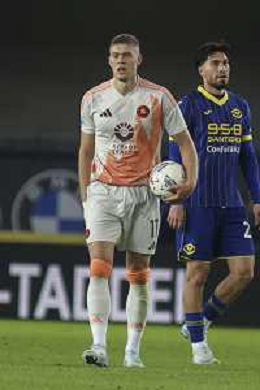 Artem Dovbyk of AS Roma scores a goal during Hellas Verona FC vs AS Roma, 11° Serie A Enilive 2024-25 game at Marcantonio Bentegodi stadium in Verona (VR), Italy, on November 03, 2024. (Photo by Davide Casentini)-AGENZIA ALDO LIVERANI SAS