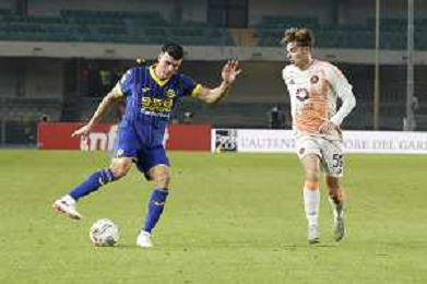 Flavius Daniliuc of Hellas Verona competes for the ball with Nicola Zalewski of AS Roma during Hellas Verona FC vs AS Roma, 11° Serie A Enilive 2024-25 game at Marcantonio Bentegodi stadium in Verona (VR), Italy, on November 03, 2024. (Photo by Davide Casentini)-AGENZIA ALDO LIVERANI SAS