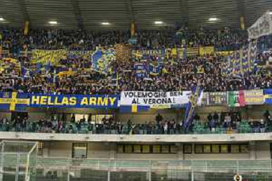 Tifosi - Hellas Verona fans show their support during Hellas Verona FC vs AS Roma, 11° Serie A Enilive 2024-25 game at Marcantonio Bentegodi stadium in Verona (VR), Italy, on November 03, 2024. (Photo by Davide Casentini)-AGENZIA ALDO LIVERANI SAS