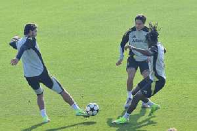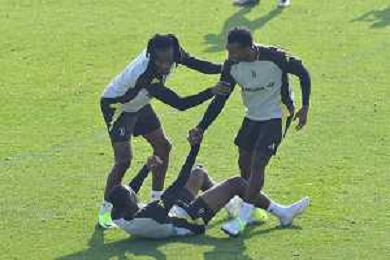 TVMV-Torino 04.11.2024 Continassa © Manuela Viganti/Agenzia Aldo Liverani Allenamento Juventus Rifinitura partita Champions League Lille vs Juventus Nella foto: khephren thuram, timothy weah e juan cabal ©Viganti/AGENZIA ALDO LIVERANI SAS