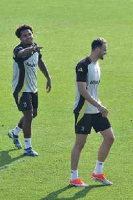 TVMV-Torino 04.11.2024 Continassa © Manuela Viganti/Agenzia Aldo Liverani Allenamento Juventus Rifinitura partita Champions League Lille vs Juventus Nella foto: weston mc kennie e federico gatti ©Viganti/AGENZIA ALDO LIVERANI SAS