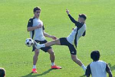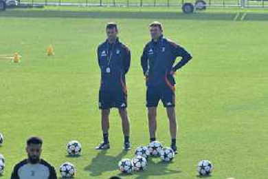 TVMV-Torino 04.11.2024 Continassa © Manuela Viganti/Agenzia Aldo Liverani Allenamento Juventus Rifinitura partita Champions League Lille vs Juventus Nella foto: kenan yildiz e francisco conceicao ©Viganti/AGENZIA ALDO LIVERANI SAS