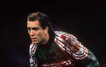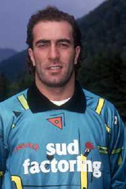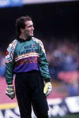 DIA- RETROSPETTIVA GIUSEPPE ALBERGA CALCIATORE DI RUOLO PORTIERE NELLA FOTO GIUSEPPE ALBERGA CON LA MAGLIA DEL BARI CALCIO NELL’ANNO 1991-1992 AG ALDO LIVERANI SAS
