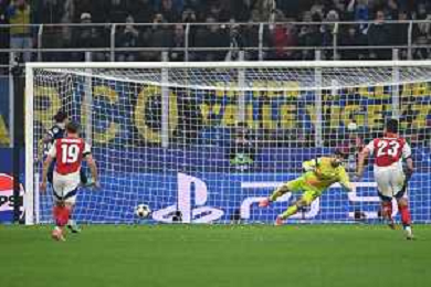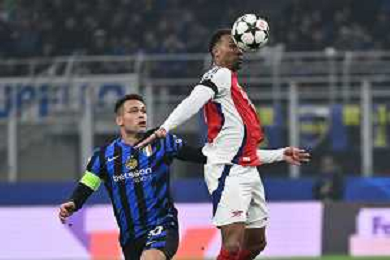 Inter vs Arsenal nella foto il tocco di mano di Mikel Merino (Arsenal) giudicato da rigore dall'arbitro Istvan Kovacs (ROM) e dal VAR Milano 06-11-2024 Stadio Giuseppe Meazza - San Siro UEFA Champions League fase a girone unico - 4a giornata foto Roberto Garavaglia/Agenzia Aldo Liverani sas