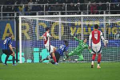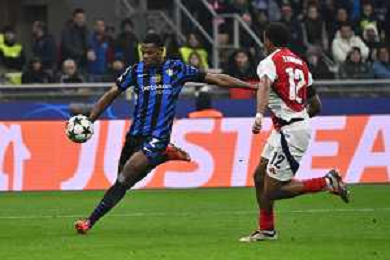 Inter vs Arsenal nella foto Denzel Dumfries (Inter) ferma sulla linea la conclusione di William Saliba (Arsenal) Milano 06-11-2024 Stadio Giuseppe Meazza - San Siro UEFA Champions League fase a girone unico - 4a giornata foto Roberto Garavaglia/Agenzia Aldo Liverani sas