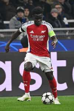 Inter vs Arsenal nella foto Bukayo Saka (Arsenal) Milano 06-11-2024 Stadio Giuseppe Meazza - San Siro UEFA Champions League fase a girone unico - 4a giornata foto Roberto Garavaglia/Agenzia Aldo Liverani sas