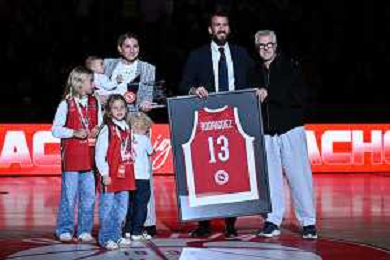 TVRG EA7 Emporio Armani Olimpia Milano vs Real Madrid nella foto Sergio Rodriguez durante la celebrazione per l'ingresso nella Hall of Fame dell'Olimpia Milano Assago (MI) 07-11-2024 Unipol Forum Turkish Airlines EuroLeague 8a giornata regular season foto Roberto Garavaglia/Agenzia Aldo Liverani sas