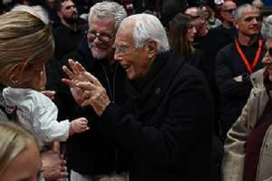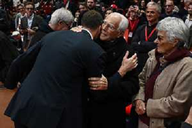 TVRG EA7 Emporio Armani Olimpia Milano vs Real Madrid nella foto abbraccio tra Sergio Rodriguez e Giorgio Armani Assago (MI) 07-11-2024 Unipol Forum Turkish Airlines EuroLeague 8a giornata regular season foto Roberto Garavaglia/Agenzia Aldo Liverani sas