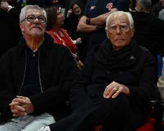 TVRG EA7 Emporio Armani Olimpia Milano vs Real Madrid nella foto Pantaleo Dell'Orco presidente Olimpia Milano SX e Giorgio Armani DX Assago (MI) 07-11-2024 Unipol Forum Turkish Airlines EuroLeague 8a giornata regular season foto Roberto Garavaglia/Agenzia Aldo Liverani sas