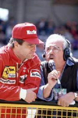 DIA- RETROSPETTIVA EZIO ZERMIANI GIORNALISTA SPORTIVO NELLA FOTO EZIO ZERMIANI CON GERHARD BERGER PILOTA F1 FERRARI NELL’ANNO 1994 AG ALDO LIVERANI SAS