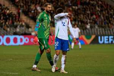 TVEM November 14, 2024 Brussels, Belgium - Belgium vs Italy - UEFA Nations League 2024/25, League A Group A2 match - King Baudouin Stadium. In the pic: Gianluigi Donnarumma of Italy and Giovanni Di Lorenzo of Italy foto emmanuele mastrodonato-ag aldo liverani sas