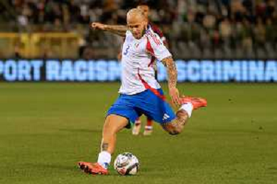 TVEM November 14, 2024 Brussels, Belgium - Belgium vs Italy - UEFA Nations League 2024/25, League A Group A2 match - King Baudouin Stadium. In the pic: Federico Dimarco of Italy FOTO EMMANUELE MASTRODONATO-AG ALDO LIVERANI SAS