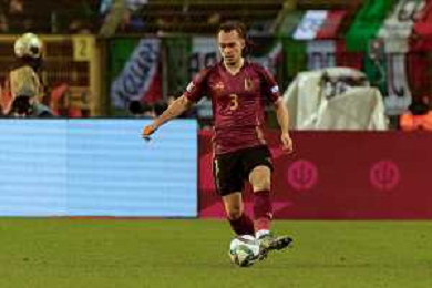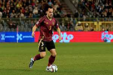 TVEM November 14, 2024 Brussels, Belgium - Belgium vs Italy - UEFA Nations League 2024/25, League A Group A2 match - King Baudouin Stadium. In the pic: Arthur Theate of Belgium FOTO EMMANUELE MASTRODONATO-AG ALDO LIVERANI SAS