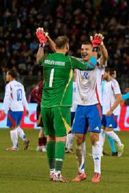 TVEM November 14, 2024 Brussels, Belgium - Belgium vs Italy - UEFA Nations League 2024/25, League A Group A2 match - King Baudouin Stadium. In the pic: Gianluigi Donnarumma of Italy celebrates the victory FOTO EMMANUELE MASTRODONATO-AG ALDO LIVERANI SAS